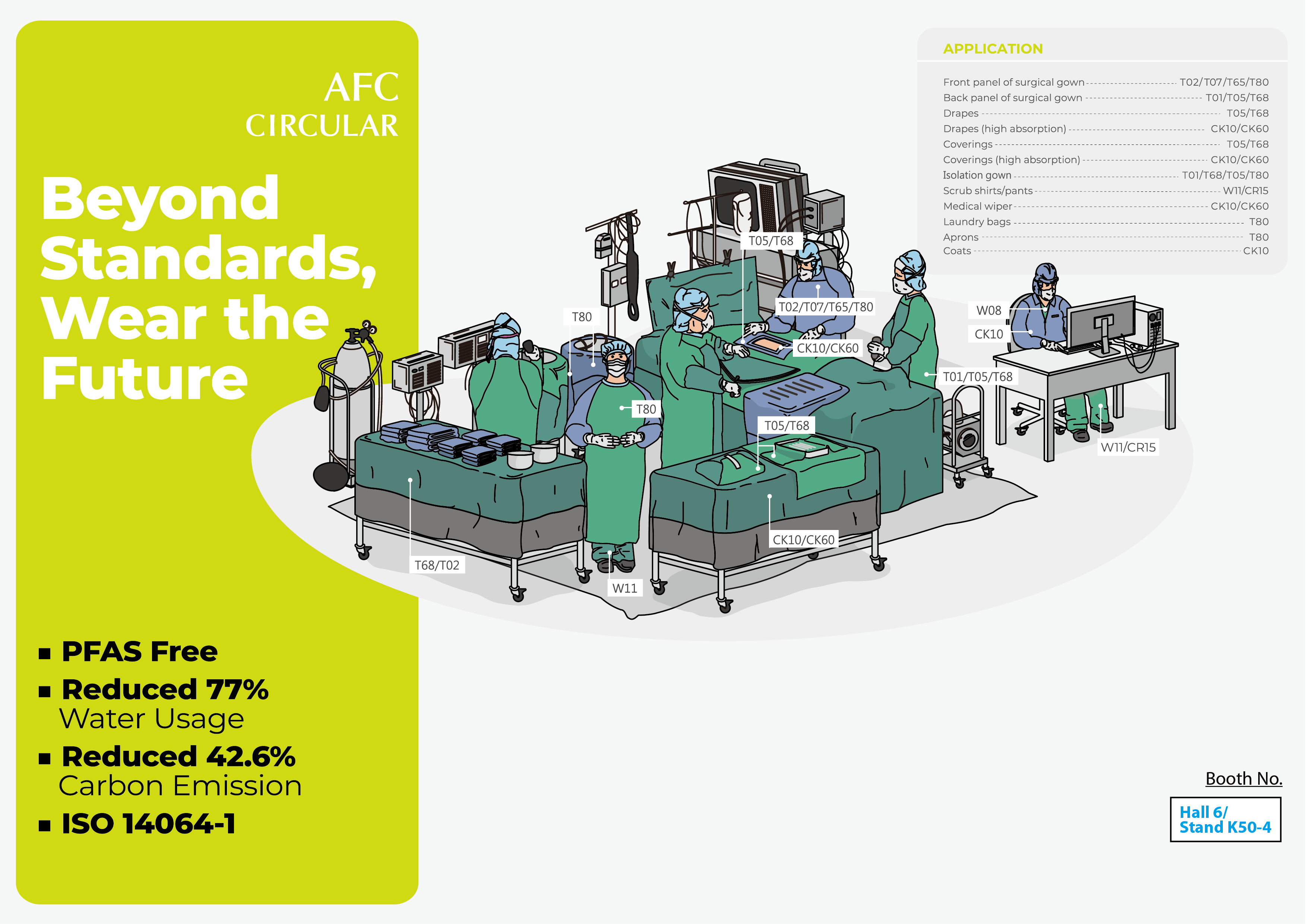 AFC is dedicated to redefining medical textiles—not just replacing disposable products, but delivering next-level comfort, protection, and sustainability through advanced fabric engineering. This year, we highlight a new-generation scrub suit fabric featuring certified high-level protection, exceptional breathability, and long-term durability.